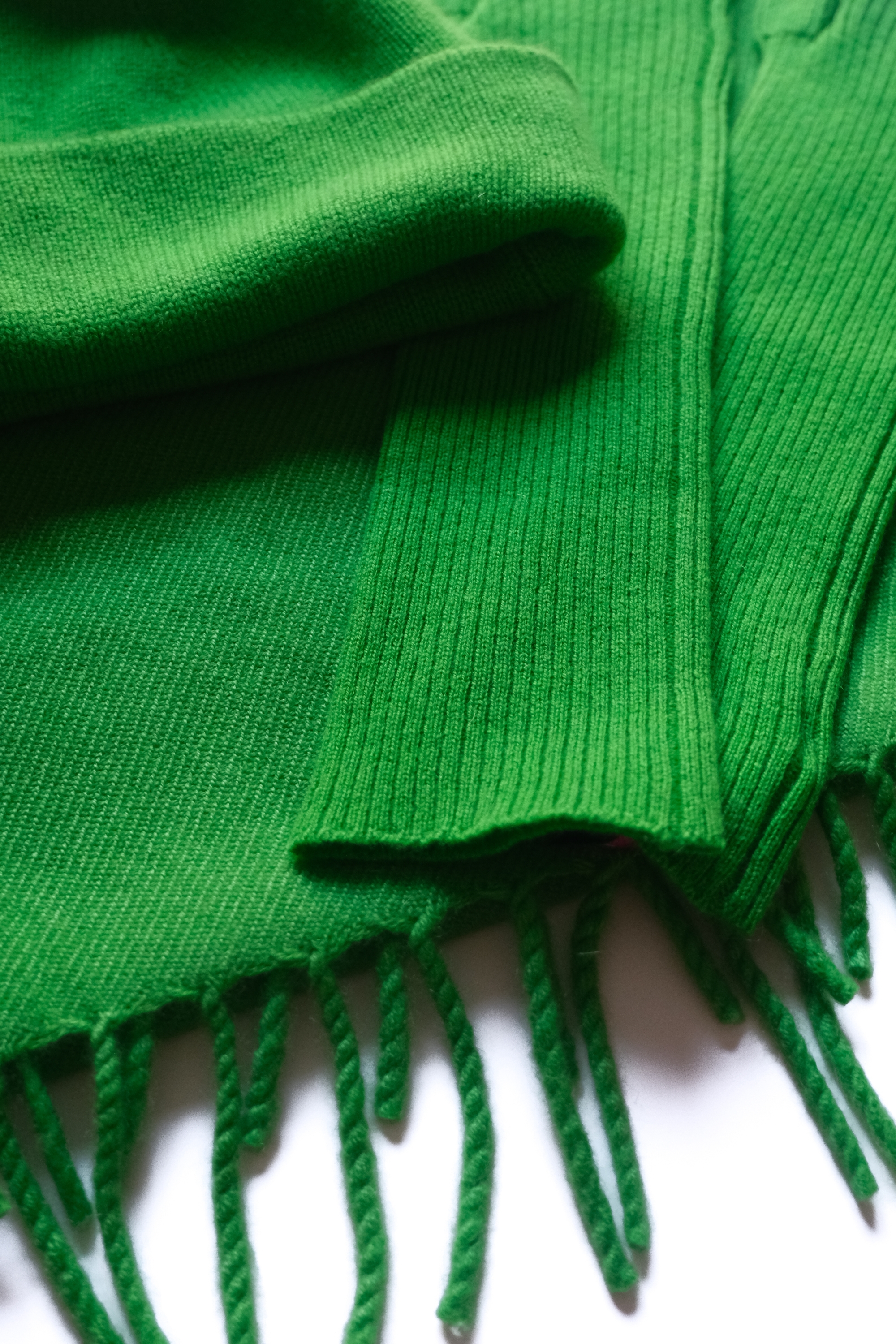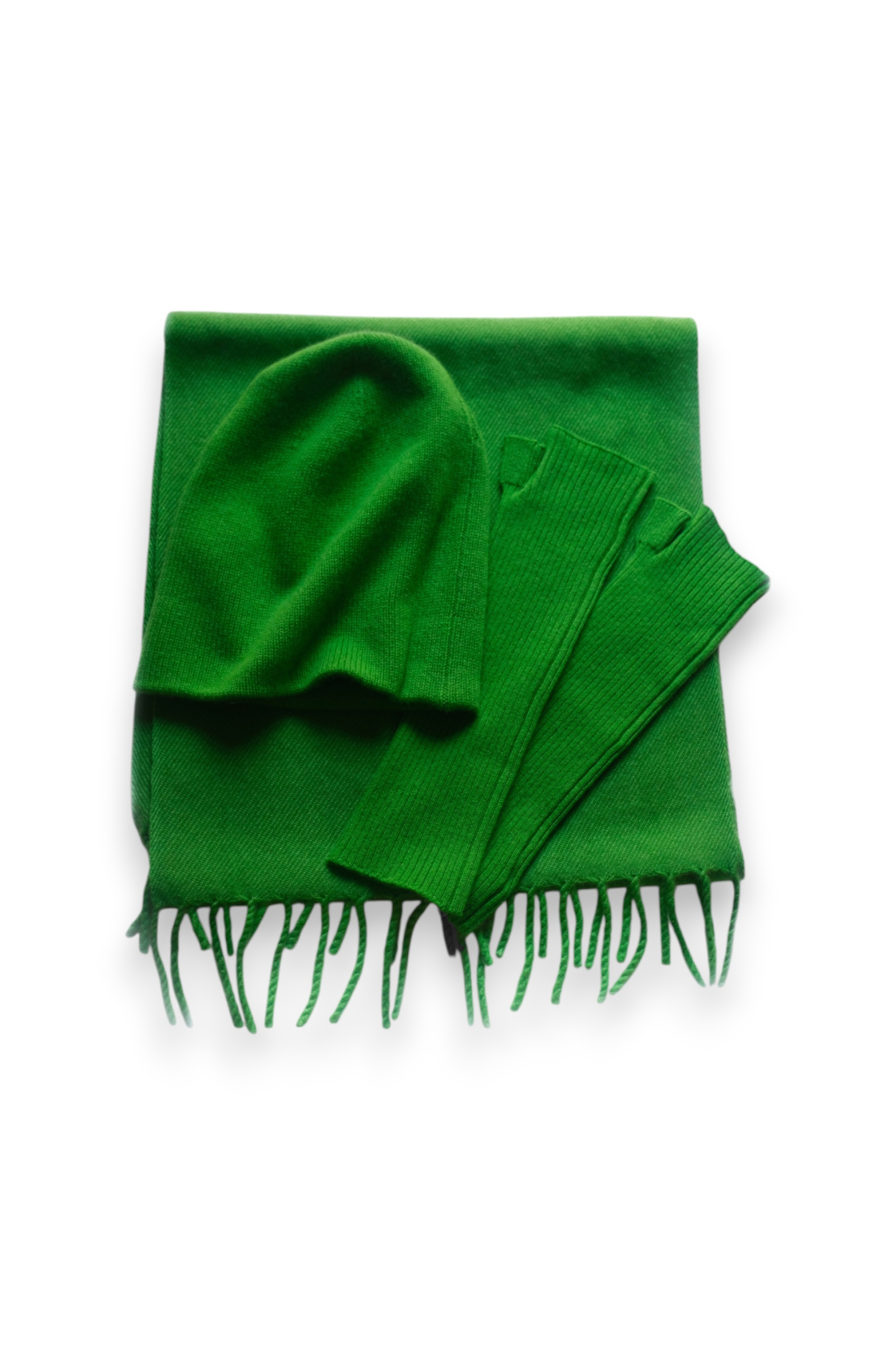 Assortiment d'accessoires 100 % cachemire composé de l'écharpe REVE (6 fils tissés), des mitaines RAIN (2 fils côtelés) et du bonnet DONNA (4 fils), la parfaite combinaison pour lutter contre le froid de l'hiver.