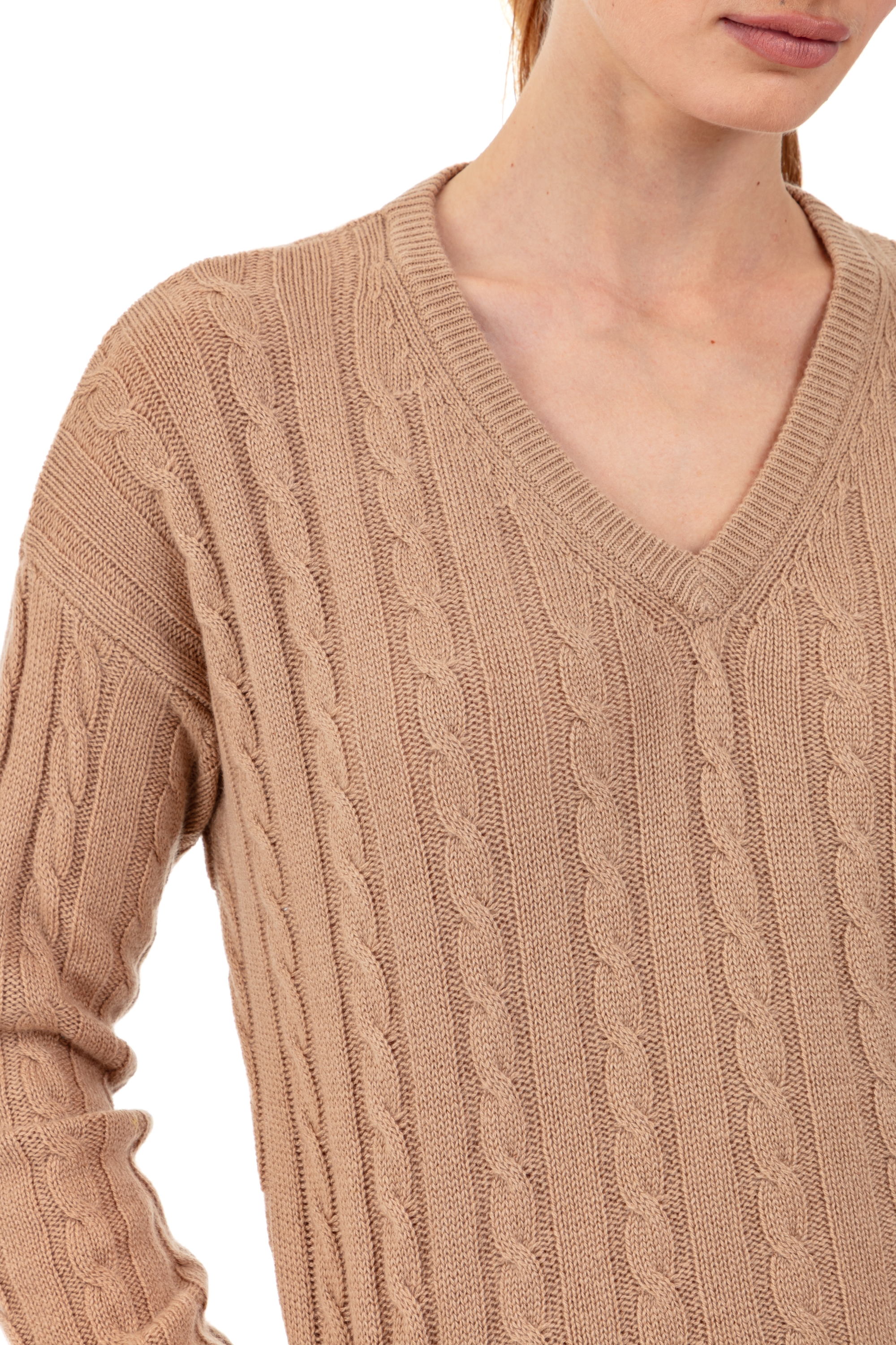 • Ce pull torsadé en cachemire col V se porte aussi bien avec un jean pour une allure décontractée chic qu’avec une jupe midi pour une touche élégante. Une pièce classique revisitée pour sublimer vos looks d’hiver.