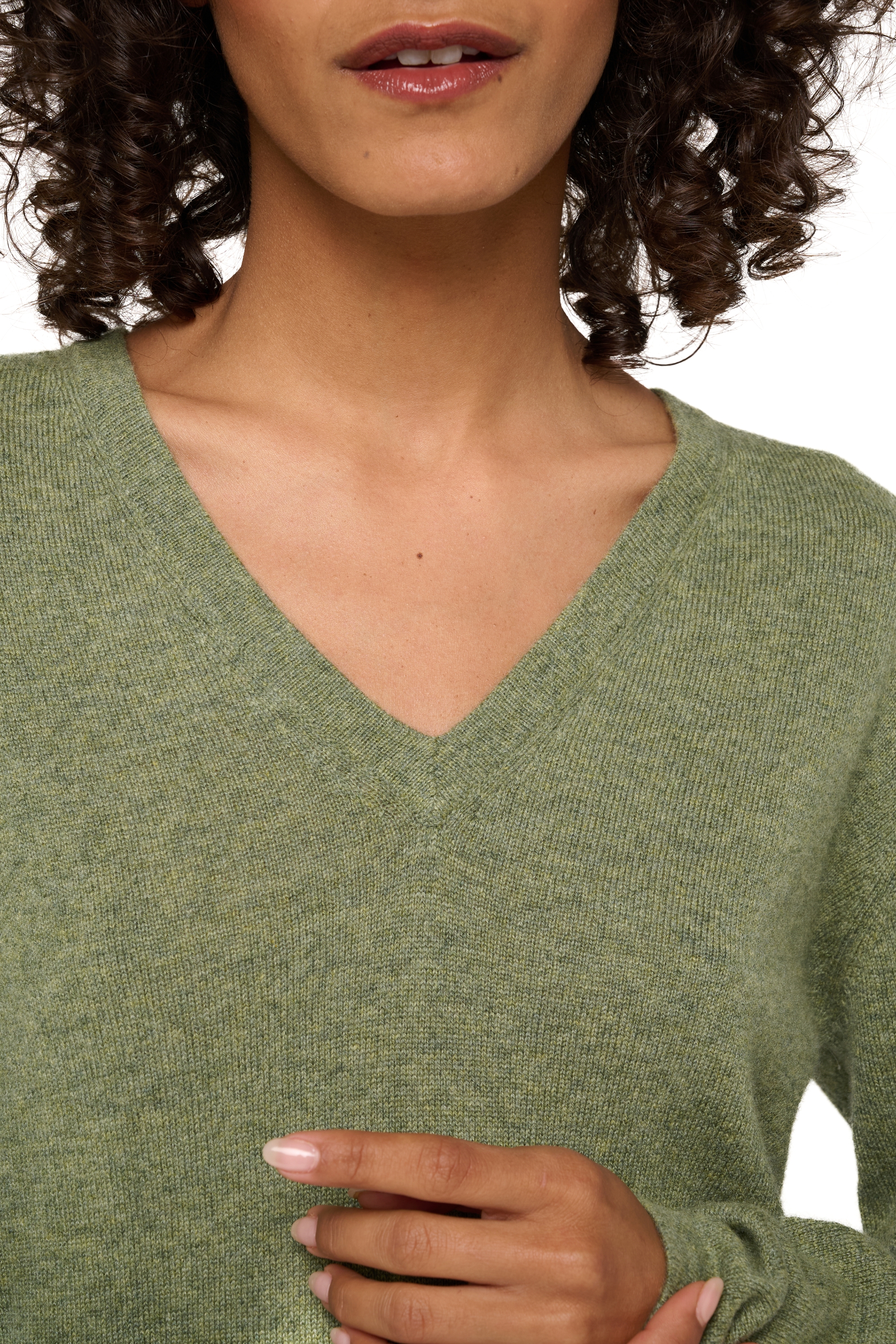 Col V, finition bord tubulaire à la base et aux poignets. Tomber droit, ne marque donc pas la taille. Parfait pour masquer les petites rondeurs.