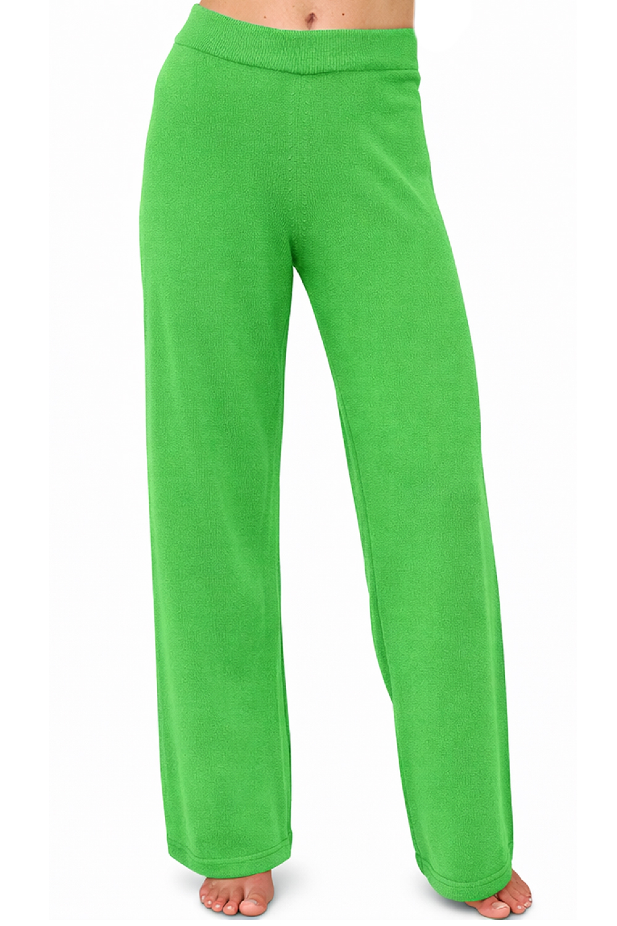 Pantalon taille élastiquée. Très cocooning. Bas légèrement évasé.