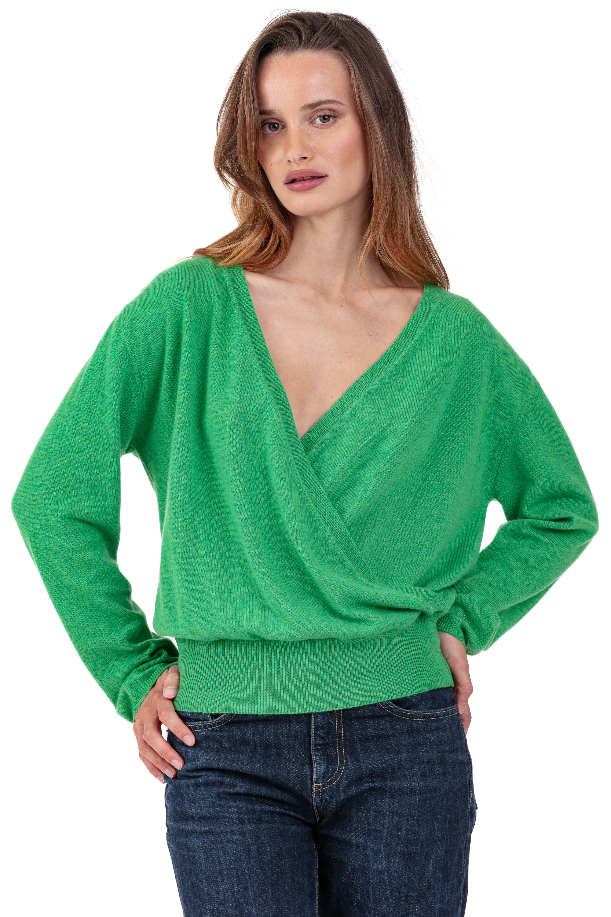 Élégant et raffiné, le pull femme PAULA se distingue par sa coupe cache-cœur, féminine et intemporelle. Tricoté en 100% cachemire 2 fils, il offre une maille fine et douce, idéale pour un porté confortable et élégant. Ses manches longues soulignent la finesse et la fluidité de la maille.
