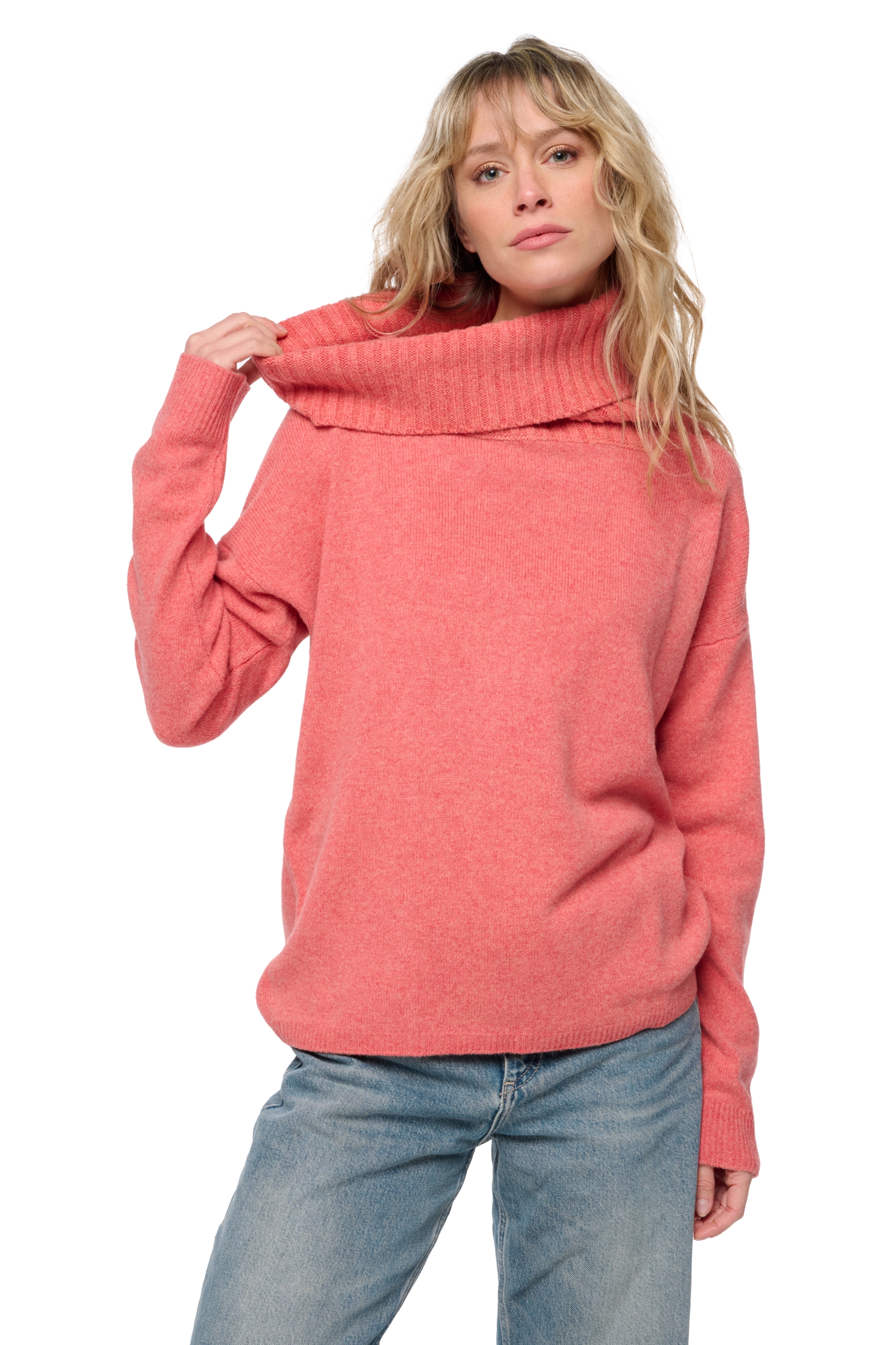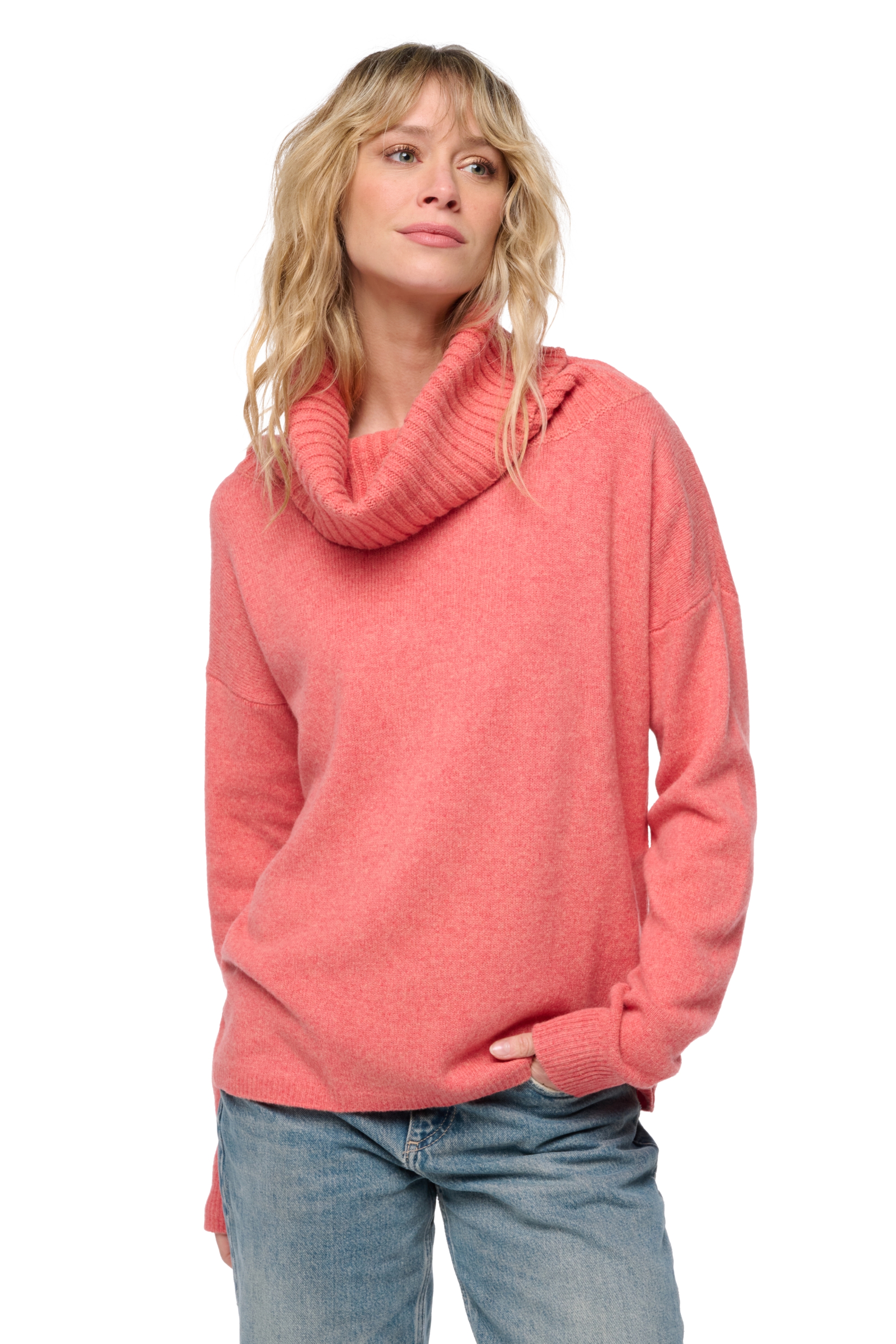 Pull en yak à col roulé large. Le col, tricoté en 4 fils en côtes 2x2 donne à ce modèle un volume tendance et travaillé.