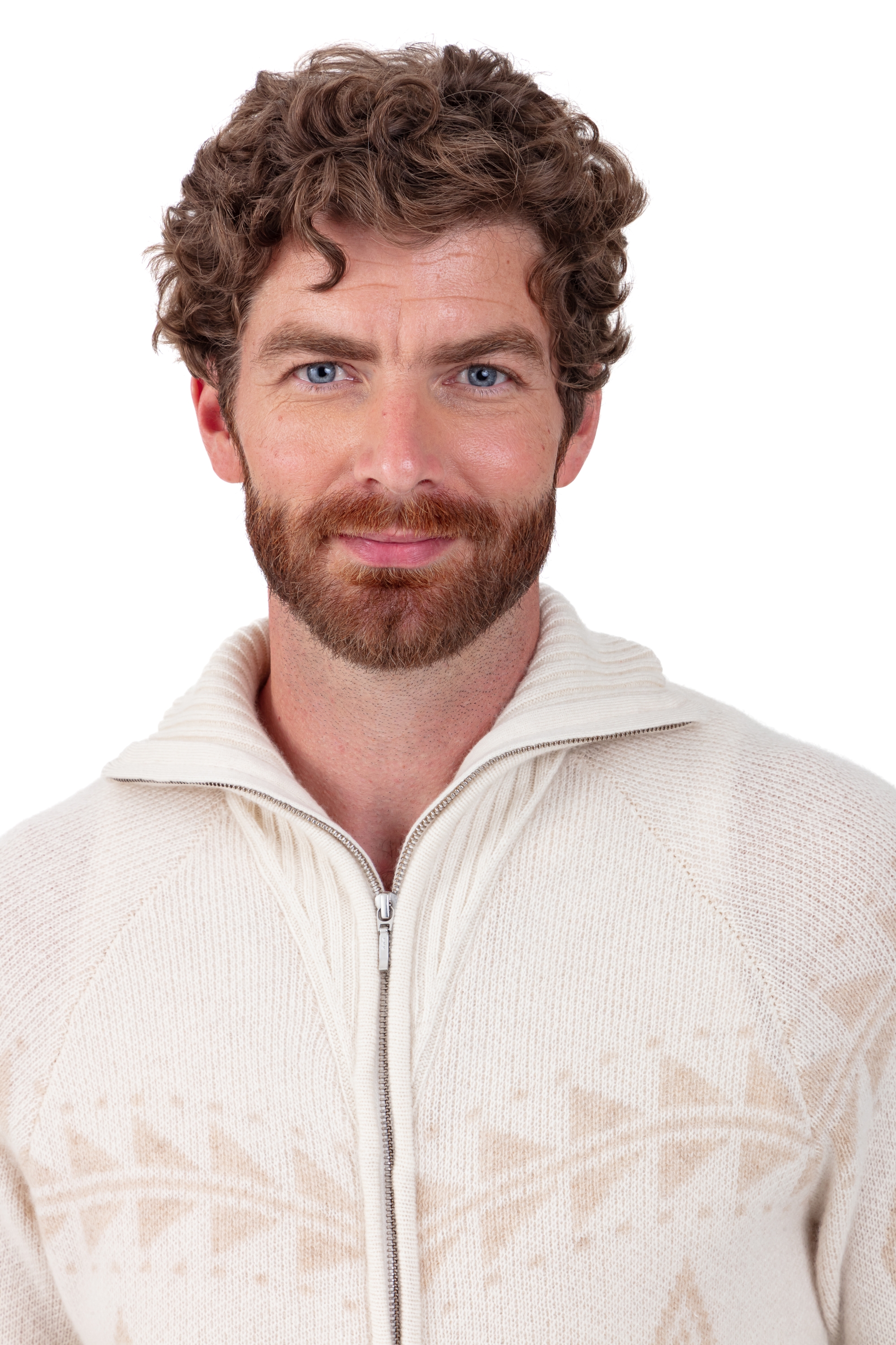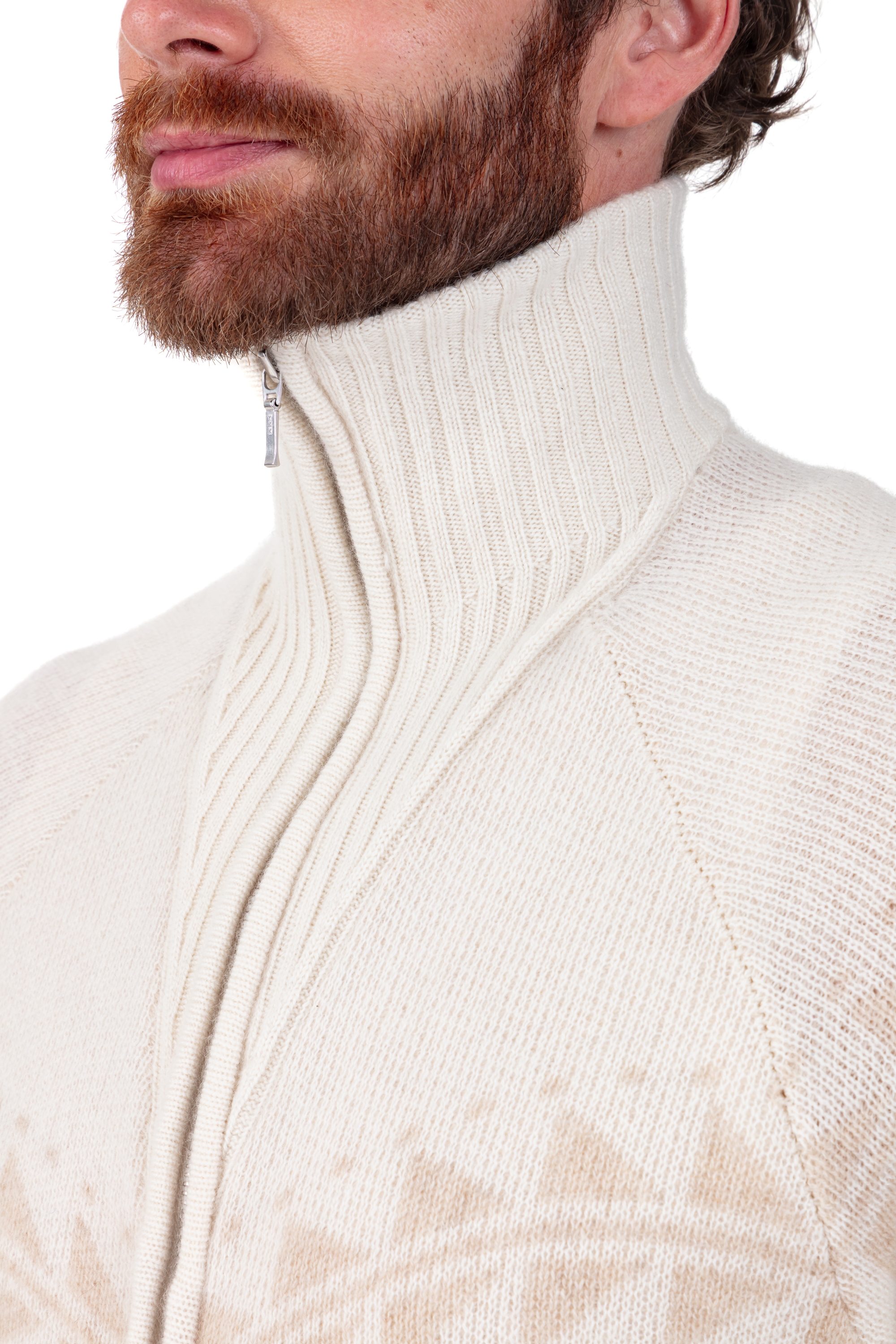 Audacieux et graphique, le cardigan homme PHOENIX en cachemire adopte un motif jacquard losanges bicolores. Tricoté en 100% cachemire 4 fils, il associe chaleur et confort. Son col montant côtelé et sa fermeture double zip apportent une touche pratique et moderne.
