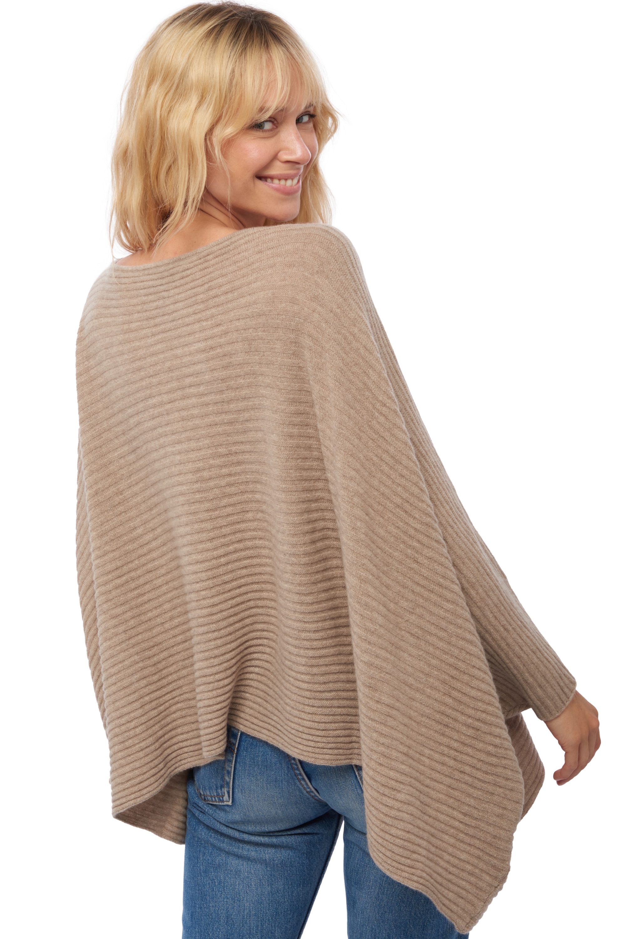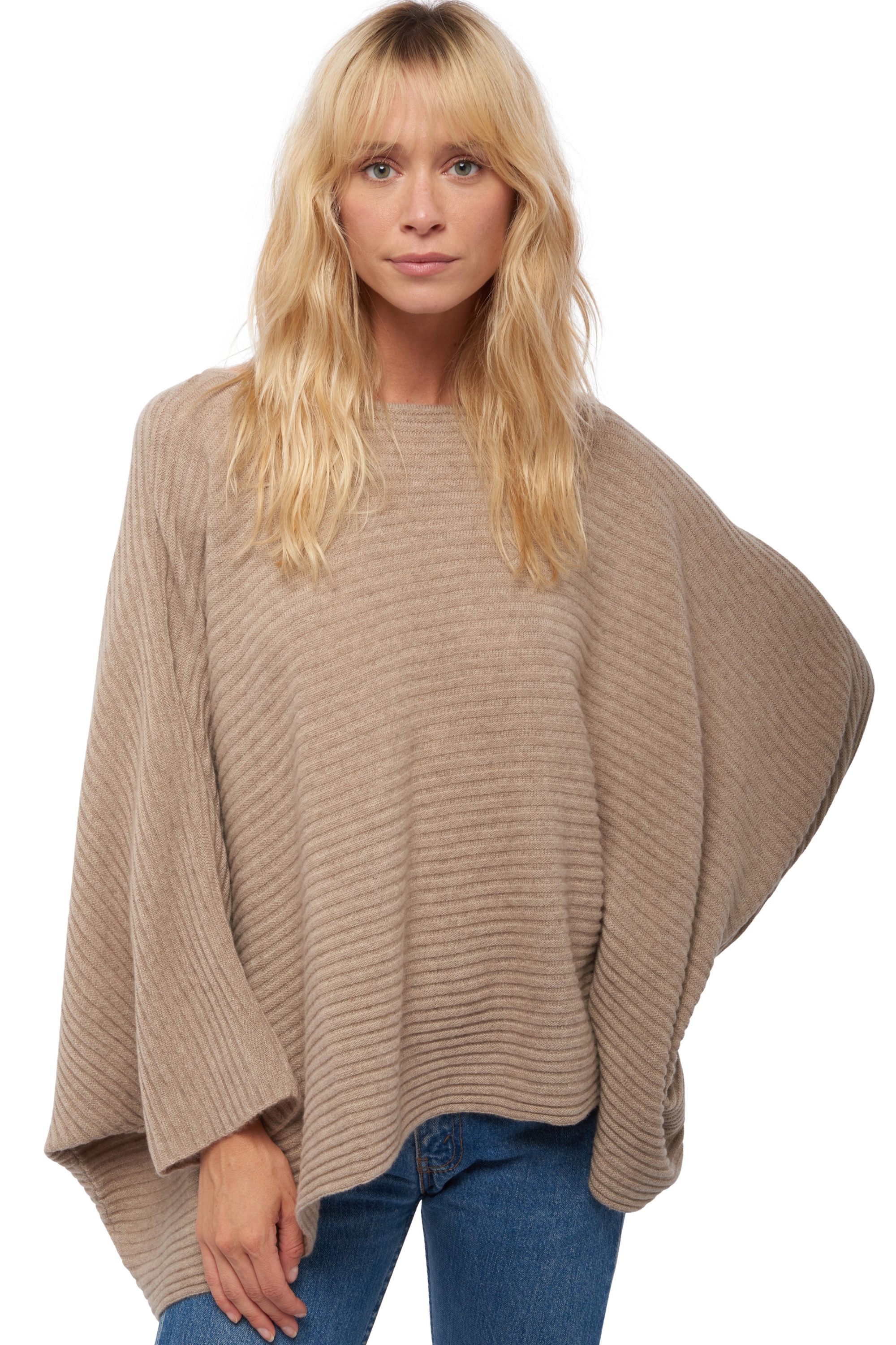 Pull poncho côtelé à encolure bateau.